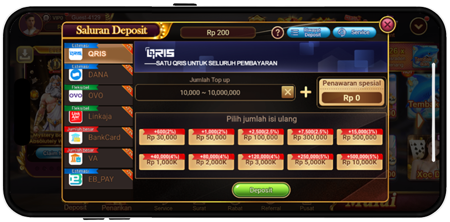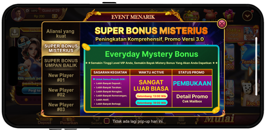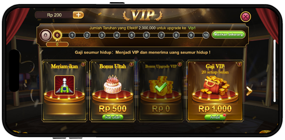 💥Note: If you finish the first VIP upgrade ( from VIP0 TO VIP1 ),then you can also get Rp10,000 extra reward !