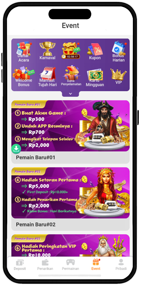 🏆1️⃣ VIP Upgrade Bonus : Deposit Rp10,000+ now, and upgrade to VIP1 player,then start enjoying VIP benefits.